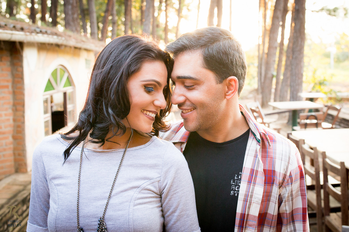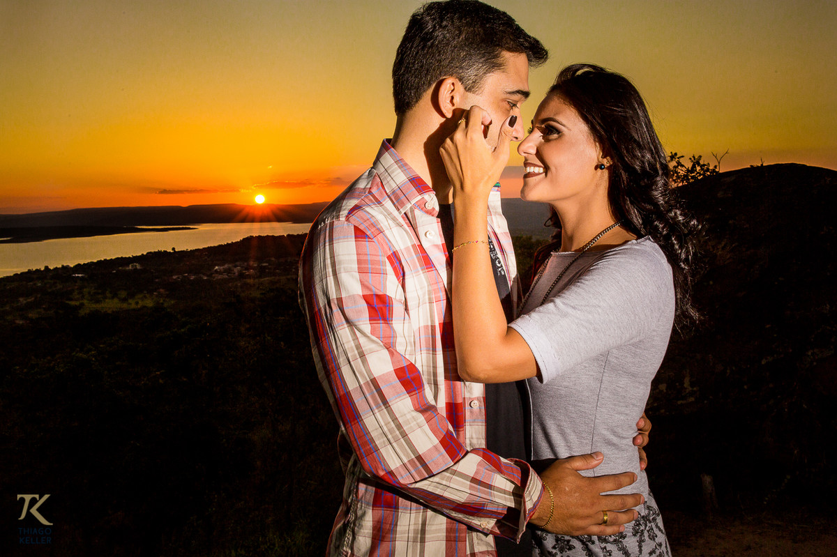 Fotografia de casal, sessão de fotos para casamento de Sabrina e Alberto na cidade de Três Marias em Minas Gerais. Casal se olha apaixonado. Flare.